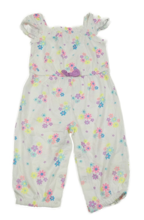 Biely nohavicový overal s farebnými kvetinami