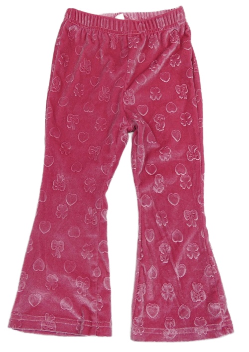 Ružové zamatové flare legíny so srdiečkami a mašľami Shein