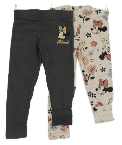 2Set - 2x zateplené legíny s Minnie - antracitové + béžové kvetované C&A