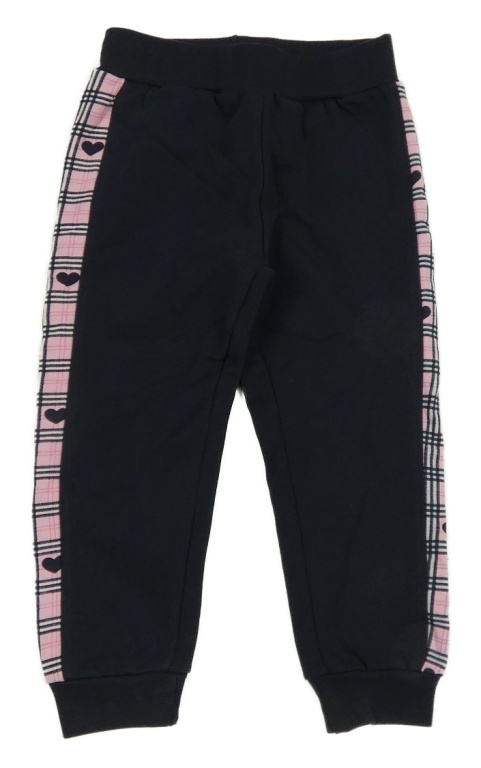 Tmavomodro-ružovo-biele tepláky so srdiečkami a kockovaným pruhom