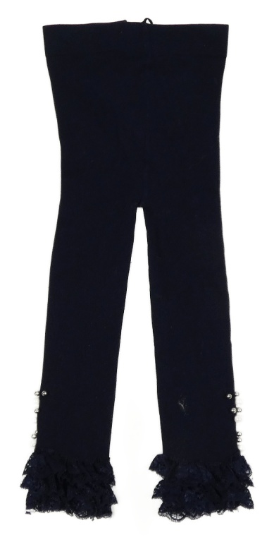 Tmavomodré rebrované pančuskové legíny s perlami a čipkou