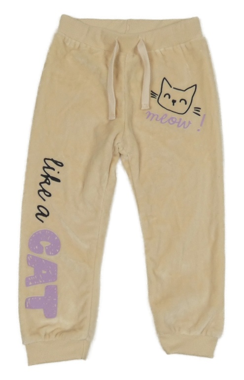 Nové - vanilkové plyšové tepláky s mačičkou a nápisom so cute