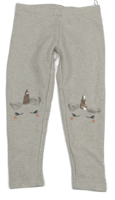 Světlebéžovo/šedé melírované teplákové zateplené legíny s jednorožci s flitrami C&A