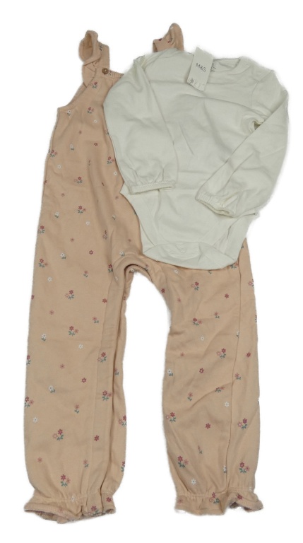 Nové - 2set - Broskvové na traké tepláky s kytičkami + biele body M&S
