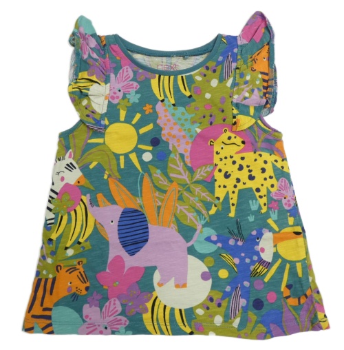 Petrolejové melírované tričko so zvieratkami a sluníčky a banány a volánikmi Next