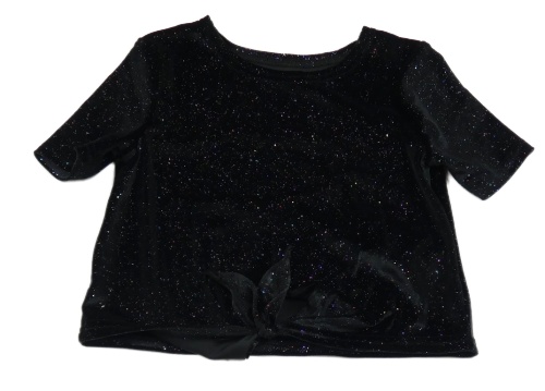 Nové - Čierne zamatové trblietavé crop tričko s uzlom Dunnes