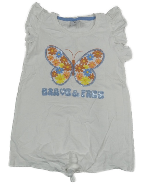 Biele tričko s motýlom s kvetmi a flitrami Kiki&Koko