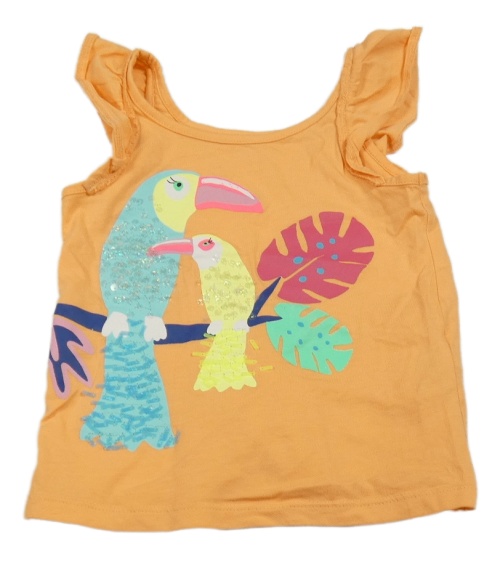Oranžový top s vtáčky a volánikmi C&A