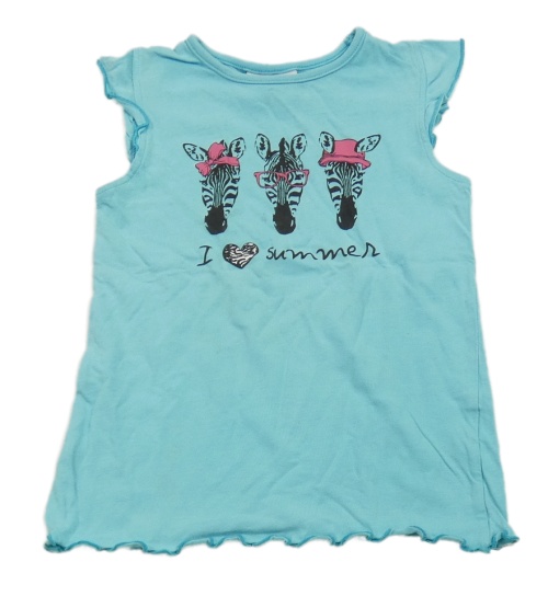 Modrý top so zebrami a nápisom Topolino