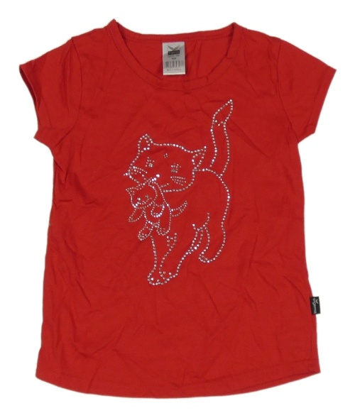 Červené tričko s mačičkou a koťátkem z kamínků trigema