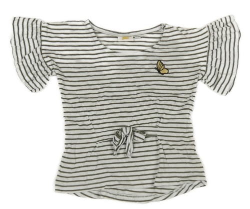 Bielo-zelené pruhované tričko s motýlkom a volánikmi kids