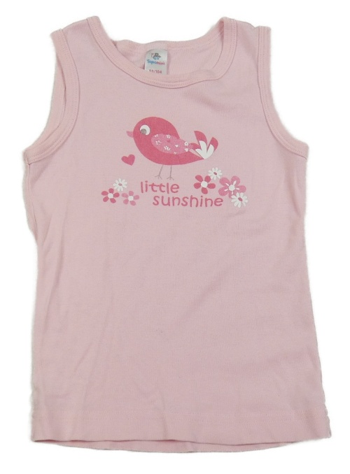 Svetloružový top s vtáčikom a kvetmi a nápismi Topomini
