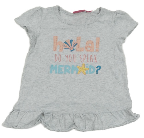 Svetlosivé melírované tričko s nápismi a mušlí a hvězdicí impidimpi