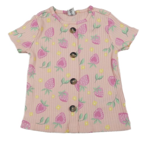 Ružové rebrované tričko s jahodami a gombíkmi Dopodopo
