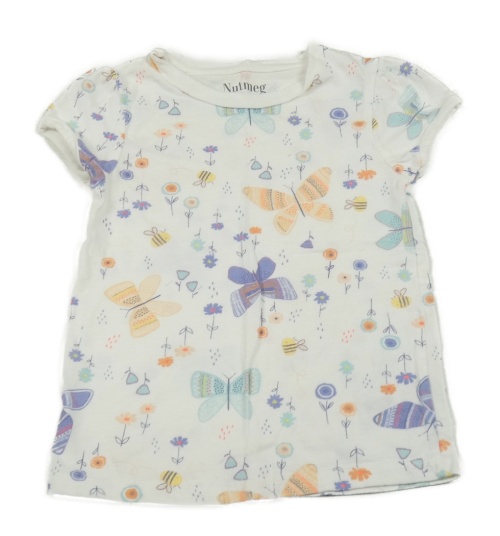 Biele tričko s kvetmi a motýlikmi Nutmeg