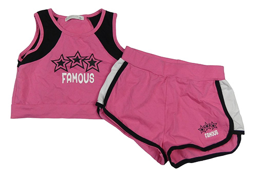 2set - Tmavorůžovo-čierny crop top s hvězdami + bavlnené kraťasy