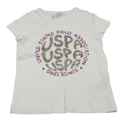 Biele tričko s nápisy z flitrů U.S. Polo Assn.
