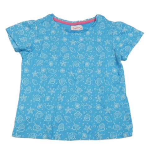 Modré tričko s s mušličkami a hvězdicemi a bublinkami impidimpi