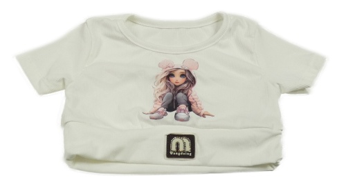 Biele rebrované crop tričko s obrázkom a logom
