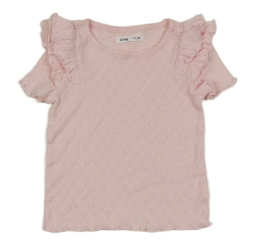Svetloružové tričko s perforovanými srdiečkami a volánikmi sinsay