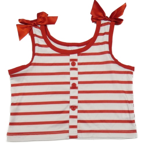 Bielo-červený pruhovaný rebrovaný crop top s gombíkmi a mašľami