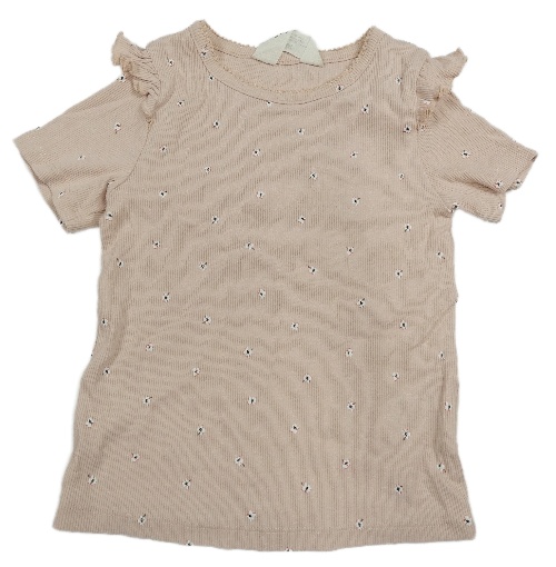 Světlepudrové rebrované tričko s kvietkami a volánikmi H&M