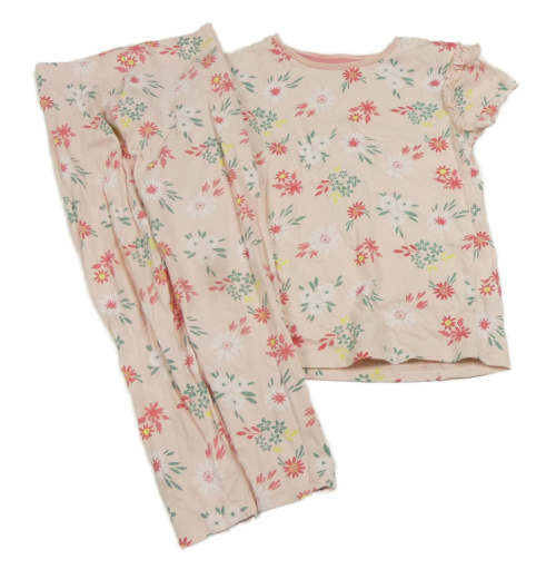 2Set - Světlepudrové tričko s kvety a volániky s madeirou + legíny Nutmeg
