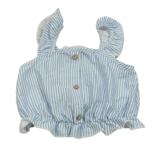 Bielo-modrý pruhovaný ľahký crop top s volánikmi