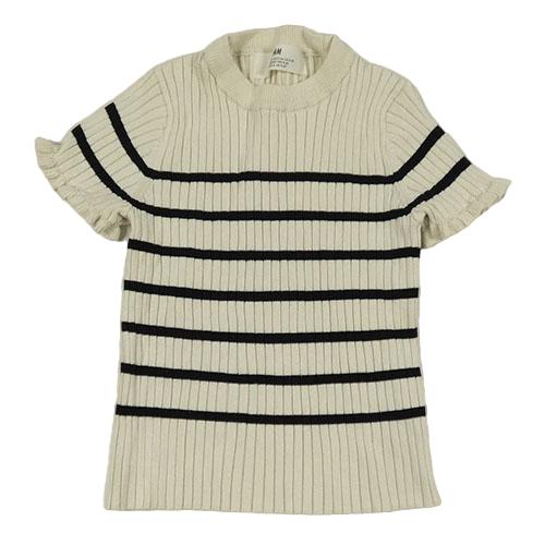 Béžovo-čierne pruhované rebrované pletené tričko H&M