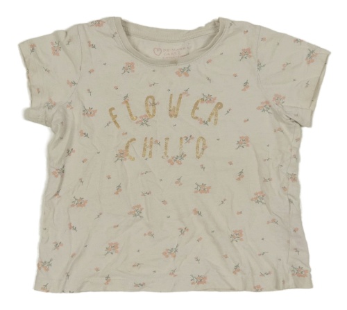 Smotanové crop tričko s kvietkami a zlatými nápisy PRIMARK