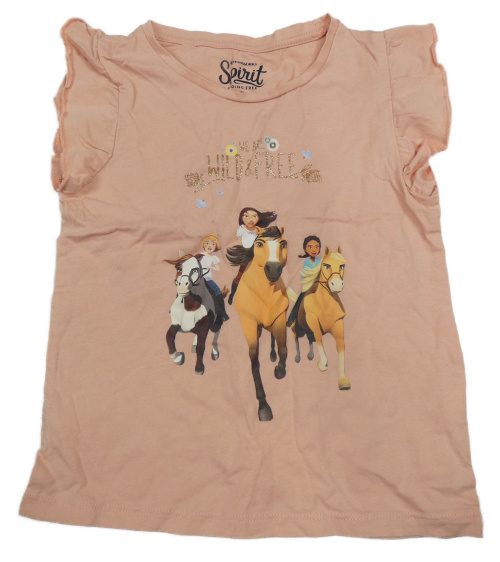 Pudrové tričko s koníky a dievčatkom a nápismi a volánikmi C&A