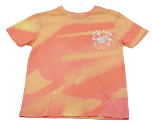 Ružovo-oranžové batikované tričko so surferom a palmami a nápismi PRIMARK