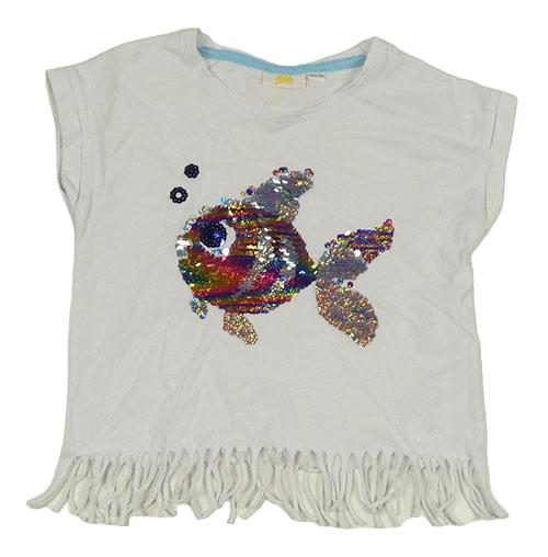 Biele tričko s rybou z překlápěcích flitrů a strapcemi Kids