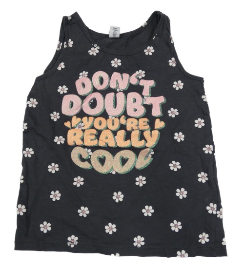 Tmavosivý top s nápisom a kvietkami Dopodopo