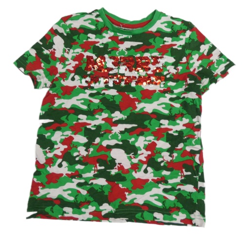 Zeleno-bielo-červené army tričko s nápisem z překlápěcích flitrů F&F