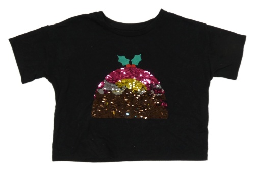 Čierne crop tričko s pudinkem z překlápěcích flitrů George