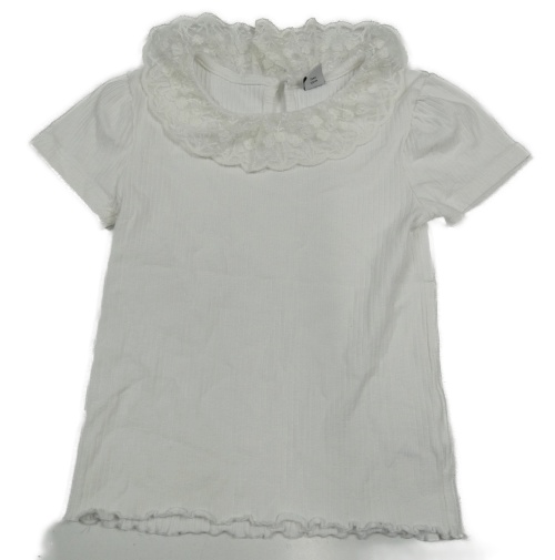 Biele rebrované tričko s čipkovým golierikom Tu