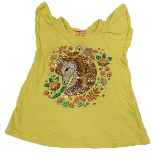 Žlté melírované tričko s jednorožcom s flitrami a kvietkami C&A