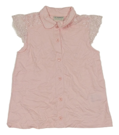 Svetloružové polo tričko s čipkou a kamienkami
