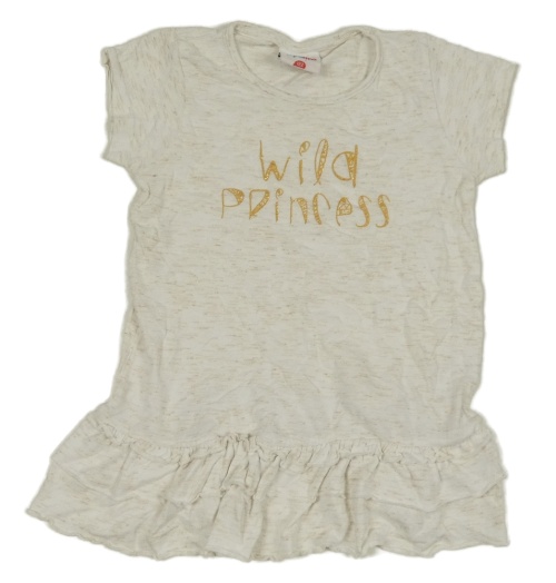 Smetanovo-zlatá žíhaná tunika s nápisom a volánikmi Topolino