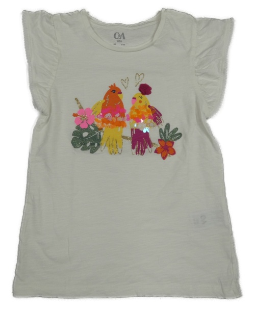 Biele melírované tričko s papoušky s flitrami a volánikmi C&A