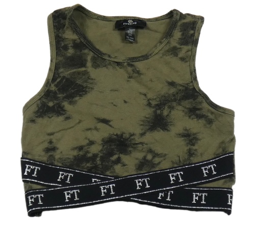 Kaki-čierny vzorovaný crop top s písmenky Firetrap