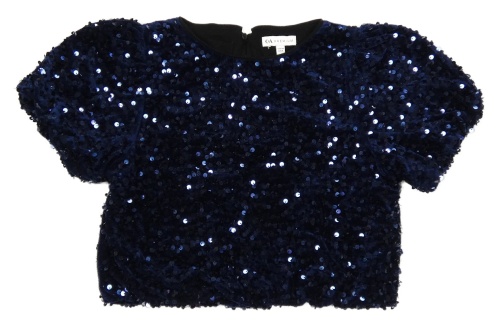 Tmavomodré zamatové flitrové crop tričko C&A
