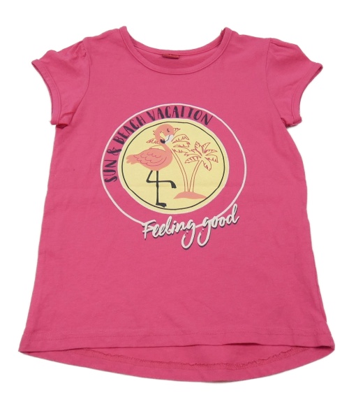 Tmavoružové tričko s plameňákem a palmami a nápis Y.F.K.