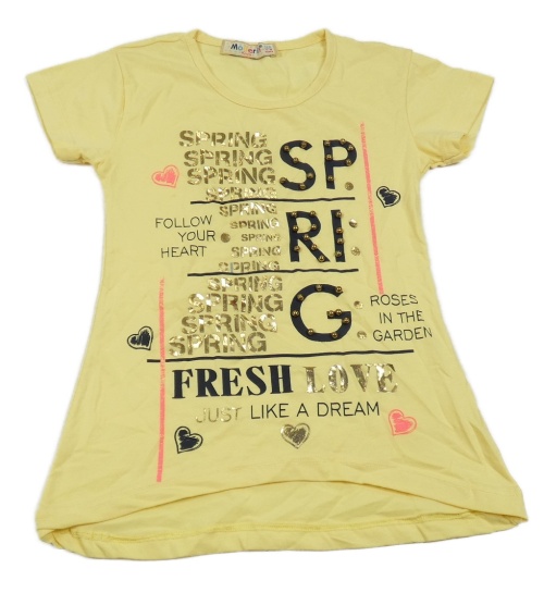 Žlté tričko s nápismi a kamienkami