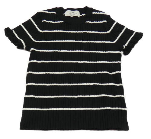 Čierno-biele pruhované rebrované úpletové tričko H&M