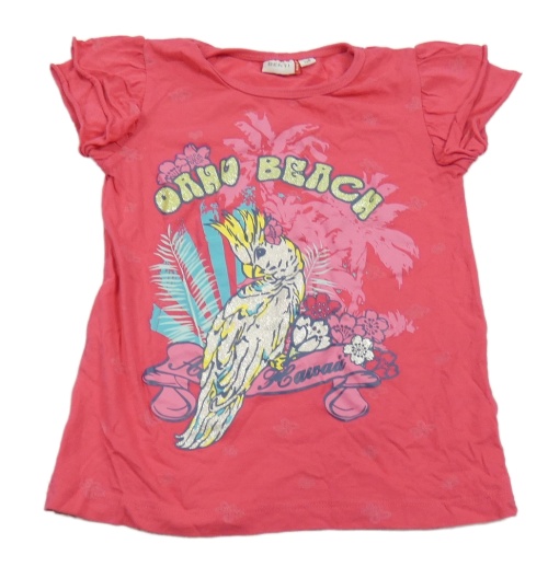 Fuchsiové tričko s papouškem a volánikmi
