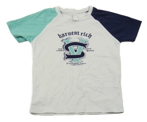 Bielo-tmavomodro-svetlotyrkysová é tričko s písmenky a nápismi