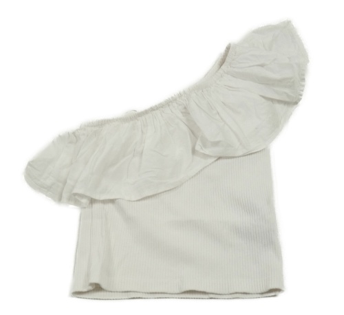 Biely rebrovaný asymetrický crop top s volánikom Zara