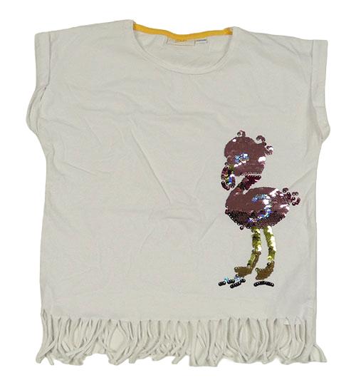 Biele tričko s plameňákem z překlápěcích flitrů a strapcemi Kids